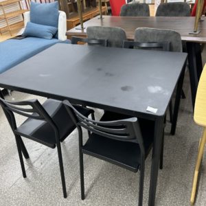 HOME > 家具 > ダイニング5点セット(ブラック)入荷のお知らせです。 家具 2026.02.25 天神原 ダイニング5点セット(ブラック)入荷のお知らせです。 ダイニング5点セットが入荷しました。 販売価格 12,900円(税込) サイズ 横幅 約1100mm 奥行 約750mm 高さ 約730mm *天板にシミがあります。 関連記事 大工町本店 2025.10.24伊藤 ダイニング3点セット入荷のお知らせです。 大工町本店 2024.08.03天神 フェザー3人掛けソファーお値段見直し致しました。 大工町本店 2025.10.12伊藤 ニトリ 洗濯機ラック入荷のお知らせです。