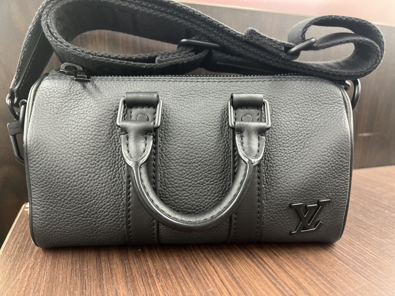 グレインカーフレザーを使用しており触り心地がよくLVロゴも同色で